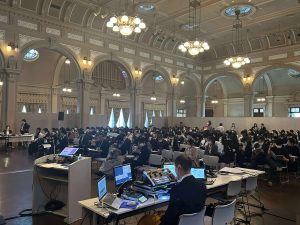 舞踏会でもできそうな高い天井のホールや細かいステンドグラスや日本書紀をあらわした天井画など、見学だけでもうっとりする素敵な学会会場でした。